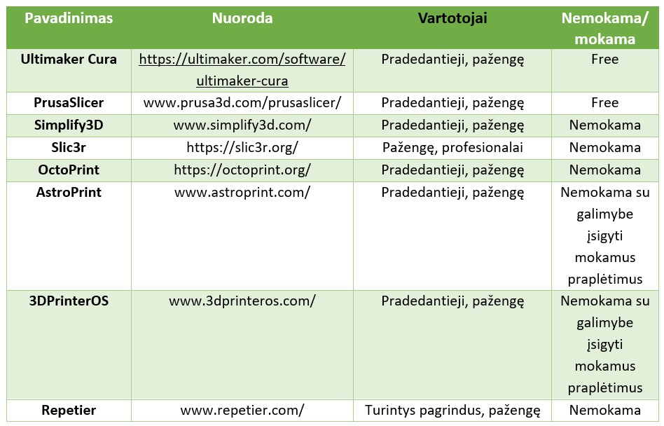 3D spausdinimui skirtos „slicer“ programinės įrangos
