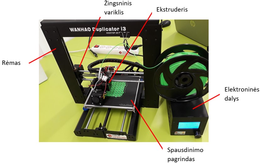 Pagrindinės FDM 3D spausdintuvų dalys: