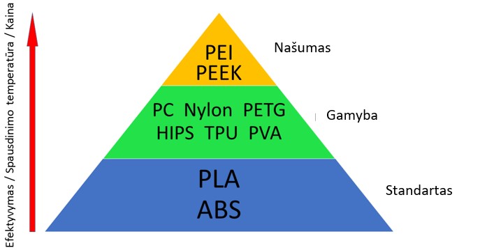 FDM medžiagų piramidė. Source: Ludor Engineering